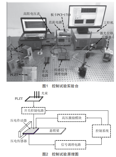 隨著研究深入發(fā)現(xiàn),PLZT具有應(yīng)變滯后、僅能半周期控制、不適用于高頻控制、有殘余應(yīng)變等弊端,嚴重限制了PLZT作動器的應(yīng)用。針對以上問題,并結(jié)合壓電作動器存在響應(yīng)速度快的優(yōu)點以及需要與電源直接相連易引入電磁干擾的弊端,開展光驅(qū)動壓電作動器研究。本文將對光驅(qū)動壓電作動器進行振動控制的控制策略研究及其可行性驗證。