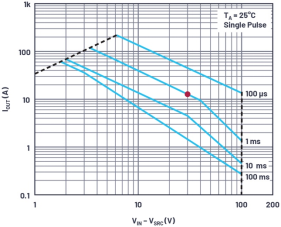圖3.LTC4381 MOSFET的安全工作區(qū)域。