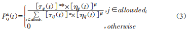 步驟3:根據(jù)當(dāng)前信息素濃度計(jì)算第k只螞蟻由柵格i轉(zhuǎn)向柵格j的概率: