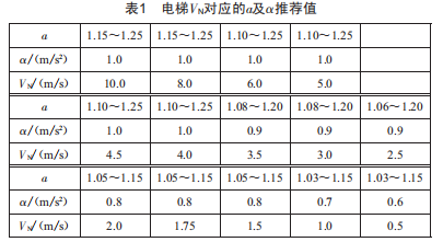 而電梯速度VN與對(duì)應(yīng)的速度系數(shù)a及加速度α推薦值如表1所示。