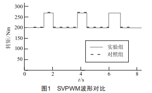 根據(jù)上述實(shí)驗(yàn)方法進(jìn)行實(shí)驗(yàn),兩組實(shí)驗(yàn)SVPWM波形對(duì)比如圖1所示。