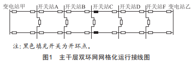(1)如圖1所示主干層按雙環(huán)網(wǎng)網(wǎng)格化建設(shè)運行四回線路來自兩個變電站同一變電站出線的兩回線路來自同一段母線。