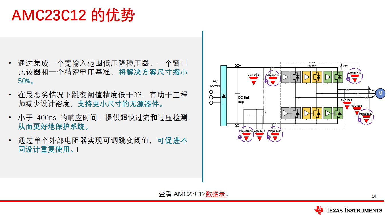 AMC23C12是業(yè)內(nèi)首款增強(qiáng)型隔離式比較器,可實現(xiàn)隔離式雙向過流、過壓和過熱檢測。該器件結(jié)合了標(biāo)準(zhǔn)比較器和穩(wěn)健的電隔離屏障,可縮小解決方案尺寸和降低成本。