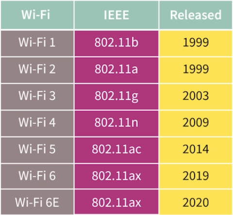表1:IEEE和Wi-Fi標(biāo)準(zhǔn)一覽