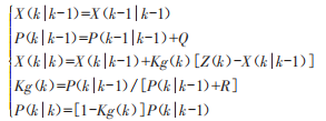 式中,X為系統(tǒng)狀態(tài):Z為測量值:Kg為卡爾曼增益:P為協(xié)方差:0為預(yù)測方差:R為測量方差。