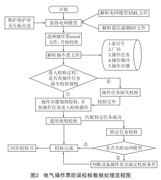 電氣操作票防誤校核數(shù)據(jù)處理流程圖如圖2所示。