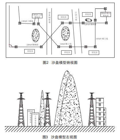 根據(jù)現(xiàn)場實際面積,我們設(shè)計了1套長2m、寬1m的長方形沙盤。根據(jù)地理走向,以線路、變電站、鐵路、房屋、山等為元素,用3D打印機將其打印成實體模型,按實際地理走向在沙盤上擺好線路、設(shè)備等,直觀展示地理走向現(xiàn)狀,從而掌握施工現(xiàn)場環(huán)境。