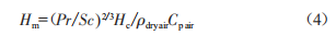 式中,Pr為普朗特?cái)?shù),取0.7;sc為施密特?cái)?shù),取0.6;Hc為對(duì)流傳熱系數(shù)[w/(m2·K)]。