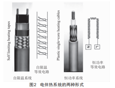 市面上的伴熱帶基本為兩種形式,一種是自限溫伴熱帶,另一種是恒功率伴熱帶(圖2)。
