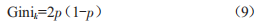 Gini系數(shù)是變量重要性度量方法之一,其分值越高,表明該變量重要性越大,公式如下: