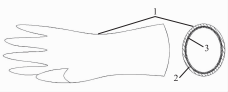 如圖1所示,該絕緣手套為三層粘合結(jié)構(gòu),三層結(jié)構(gòu)從外向里依次為絕緣層1、降溫材料層2、內(nèi)層3。