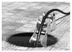 從圖1~圖4中電纜滑車(chē)的結(jié)構(gòu)可以看出,直線地跑電纜滑車(chē)、電纜地面轉(zhuǎn)接型滑車(chē)、井口電纜滑車(chē)、管口電纜滑車(chē)的工作原理都有一個(gè)共同的特點(diǎn),就是利用電纜自身的重力,壓在滑輪上,利用滑輪的滾動(dòng)原理減小電纜與直線電纜通道地面、水平轉(zhuǎn)角、井口、管口或電纜支架之間的摩擦,在長(zhǎng)距離電纜敷設(shè)施工時(shí),將相應(yīng)的電纜滑車(chē)固定于直線電纜通道地面、水平轉(zhuǎn)角、井口、管口或電纜支架相應(yīng)位置,就可以代替人工進(jìn)行電纜輸送。但是,從圖中可以看出,這些電纜敷設(shè)滑車(chē)只能用于直線電纜通道、水平拐角、井口上部、管口上部等地點(diǎn)的電纜輸送。而變電站電纜敷設(shè)施工多為穿層施工,層與層之間電纜敷設(shè)時(shí),需要在井口下部、豎直拐角、屏柜電纜出口等地點(diǎn)輸送電纜。這時(shí)候電纜輸送不能再依靠自身重力壓在滑輪上,其輸送受力與電纜重力方向相背離,如圖5所示。這時(shí)即使在直線電纜通道、水平拐角、井口上部、管口上部等地點(diǎn)使用相應(yīng)的滑車(chē)進(jìn)行電纜輸送,但在井口下部、豎直拐角、屏柜電纜出口等地點(diǎn)仍然必須采用人力輸送電纜。由于這些中間輸送環(huán)節(jié)存在人力干預(yù),即使在能使用現(xiàn)有的電纜滑車(chē)的地方都布置滑車(chē)輸送,仍然不能明顯提高電纜輸送效率,甚至?xí)谌肆斔忘c(diǎn)造成電纜堆積扭曲、打結(jié)等現(xiàn)象,反而降低了電纜敷設(shè)的工作效率。因此,現(xiàn)有的電纜滑車(chē)在變電站控制電纜敷設(shè)施工中很難發(fā)揮其優(yōu)勢(shì),不能得到很好的推廣應(yīng)用。
