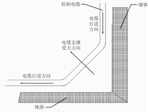 圖5井口下部、豎直拐角、屏柜電纜出口等地點(diǎn)電纜敷設(shè)受力示意圖