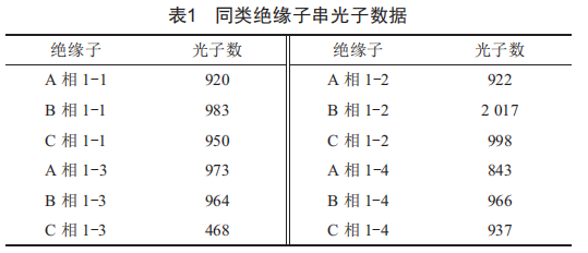 變電站絕緣子串是變電站易放電設(shè)備,通過(guò)對(duì)變電站絕緣子串?dāng)?shù)據(jù)進(jìn)行同類分析,在某次檢測(cè)中,獲得的數(shù)據(jù)如表1所示,受篇幅所限僅列出典型數(shù)據(jù)。