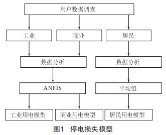 用戶停電損失評估研究分為負(fù)荷層面(居民用電、商業(yè)用電、工業(yè)用電)、饋線層面、變電站層面。本文基于負(fù)荷層面評估固原市居民、商業(yè)、工業(yè)用電停電損失。用戶停電損失評估方法主要包含直接法、間接法。直接評估法包括通過服務(wù)和生產(chǎn)損失評估停電成本(商業(yè)用電、工業(yè)用電),通過停電時(shí)長評估居民停電成本:間接評估法則通過備用資源的投用成本來評估停電損失。