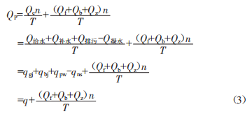 在式(2)中,等式兩邊同時(shí)除以再生周期7,即得到軟水器進(jìn)水平均流量方程: