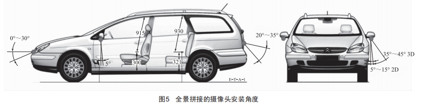圖5是全景拼接時(shí)對(duì)四個(gè)攝像頭安裝角度的要求。