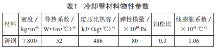 冷卻壁材料屬性如表1所示。