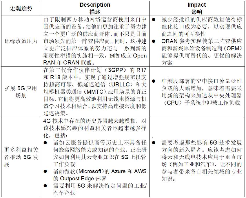 表1:影響5G演進(jìn)的宏觀趨勢(shì)
