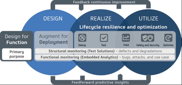 西門(mén)子提出芯片生命周期解決方案 (silicon lifecycle solutions, SLS)。 SLS 建立了一種整體方法,能夠幫助半導(dǎo)體公司改進(jìn)現(xiàn)有的工藝,SLS 平臺(tái)可以從芯片及芯片生產(chǎn)的相關(guān)工藝中收集數(shù)據(jù),并挖掘潛在數(shù)據(jù),從而在需要的時(shí)間和地點(diǎn)提供可操作的信息:例如,先進(jìn)的 DFT 技術(shù)可提高 IC 質(zhì)量,優(yōu)化測(cè)試效率,并實(shí)現(xiàn)診斷驅(qū)動(dòng)的良率分析 (Diagnosis Driven Yield Analysis);SLS 解決方案在此基礎(chǔ)上更進(jìn)一步,使用片上硬件和 DFT 邏輯來(lái)監(jiān)視和評(píng)估電路行為,并收集饋入到“fab-to-field”優(yōu)化循環(huán)的數(shù)據(jù)。