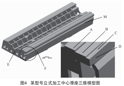 立式加工中心的立柱是我們要研究的第二個典型零件,它的主要作用是主軸箱的支撐,同時能夠連接床身、主軸等部件,其尺寸大,但結(jié)構(gòu)相對簡單,如圖3所示。
