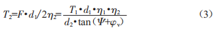 若螺桿螺紋中徑為d2,螺紋升角為w,螺旋副的當(dāng)量摩擦角為ov,可算出螺旋傳動效率n1=tanw/tan)w+ov),則螺桿所受的軸向力公式為: