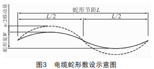 電纜敷設(shè)于橋梁上還需解決的一個(gè)重大課題是橋梁伸縮。在電纜運(yùn)行過(guò)程中,除了電纜本身的熱伸縮外,還必須解決大橋本身的伸縮問(wèn)題,因溫度變化,橋梁本身會(huì)產(chǎn)生相當(dāng)大的伸縮量,如果不采取措施,當(dāng)橋梁產(chǎn)生較大收縮量時(shí),容易造成電纜彎曲彎折:當(dāng)橋梁產(chǎn)生較大的拉伸時(shí),容易造成電纜的張力過(guò)大,造成電纜金屬護(hù)套斷裂、絕緣擊穿等現(xiàn)象,影響電纜的安全運(yùn)行。為避免上述情況的發(fā)生,建議在電纜設(shè)計(jì)時(shí)考慮采用電纜伸縮補(bǔ)償裝置,平蛇形敷設(shè)方式(圖3),以減少因橋梁拉伸造成的電纜損傷。