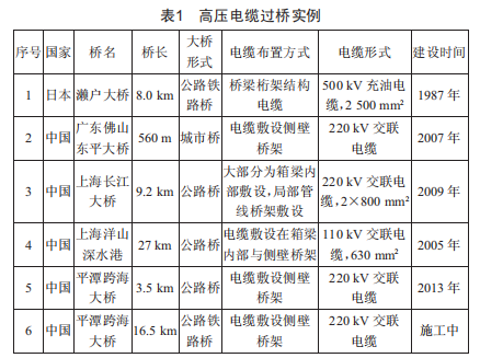 2國(guó)內(nèi)外橋梁敷設(shè)高壓電纜現(xiàn)狀研究