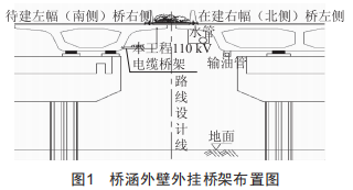 涵內(nèi)布置與橋梁外壁外掛橋架布置兩種方式。