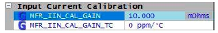 使用阻性分流器時(shí),將MFR_IOUT_CAL_GAIN_TC值設(shè)置為制造商的規(guī)格以補(bǔ)償溫度變化。通常,大于10 mΩ的分流器具有較低的溫度系數(shù):<100 ppm/°C。