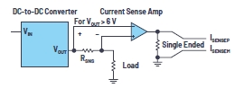 一種相關(guān)方法是增加一個(gè)以地為基準(zhǔn)的電流檢測(cè)放大器(CSA),其提供單端輸出,該輸出被饋送到管理器的電流檢測(cè)引腳。這種方法通常用于對(duì)高于大多數(shù)LTC297x管理器的6 V限值的電壓軌進(jìn)行電平轉(zhuǎn)換。CSA應(yīng)具有良好的高端共模性能。通常從被檢測(cè)的電壓軌和GND為此類(lèi)器件供電。本文第二部分會(huì)詳細(xì)介紹這種方法。