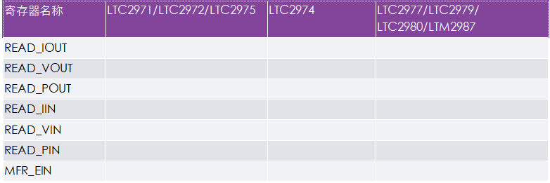 表3總結(jié)了可以從LTC297x回讀的所有遙測(cè)數(shù)據(jù)。寄存器是I2C/PMBus字讀取,但MFR_EIN寄存器除外,它是塊讀取。