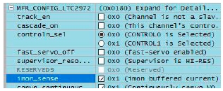 單端電壓可以是比電流分流器或電感DCR兩端產(chǎn)生的電壓大得多的信號(hào)。LTC2972和LTC2971器件甚至有一個(gè)配置位來(lái)支持更大的信號(hào)電平,它被稱(chēng)為imon_sense位。該位位于MFR_CONFIG命令中,是一個(gè)分頁(yè)命令。