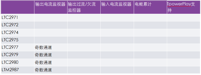 本文的重點(diǎn)是內(nèi)置電流測(cè)量功能的電源系統(tǒng)管理器。表1說(shuō)明了這些器件之間的差異。