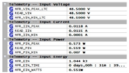 輸入電流、輸入電壓、輸入功率和輸入電能可以表格形式查看,這些值顯示在GUI的遙測(cè)部分。MFR_EIN寄存器保存累計(jì)電能值(以毫焦耳為單位)。還有一個(gè)電能累計(jì)器處于活動(dòng)狀態(tài)的總時(shí)間,顯示為MFR_EIN_TIME寄存器。當(dāng)單位從mJ變?yōu)镴再到kJ時(shí),GUI會(huì)自動(dòng)更新所顯示的SI前綴。