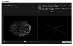 完成上述操作后,系統(tǒng)會(huì)自動(dòng)彈出特定界面,將UseAutoAccept(轉(zhuǎn)動(dòng)機(jī)器人)前面的標(biāo)記去掉,要求每個(gè)軸轉(zhuǎn)動(dòng)次數(shù)大于或等于一次,即水平原地自轉(zhuǎn)角度達(dá)到3609轉(zhuǎn)軸一次、橫滾角達(dá)到3609轉(zhuǎn)軸一次、俯仰角達(dá)到3609轉(zhuǎn)軸一次的目標(biāo)。上述過(guò)程中羅盤傳感器負(fù)責(zé)數(shù)據(jù)的采集和上傳。按照經(jīng)驗(yàn),轉(zhuǎn)動(dòng)機(jī)器人能隨意改變旋轉(zhuǎn)姿態(tài),直至全部掩蓋圖中左半部分的白點(diǎn),界面上會(huì)出現(xiàn)相對(duì)完整的彩色球,此時(shí)單擊Done按鈕,將羅盤數(shù)據(jù)保存下來(lái),如圖2(b)所示。在飛行數(shù)據(jù)界面上,改變AutoRover一cute的車頭朝向,分別設(shè)置為東、西、南、北,并比較AutoRover一cute的車頭朝向和地面站界面出現(xiàn)的車頭朝向,若二者相同,則校準(zhǔn)成功,如圖2(c)所示。