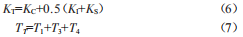 式中,KC為電纜導(dǎo)體熱容:KI為電纜絕緣層熱容:KS為電纜護(hù)套層熱容:71為絕緣層熱阻:73為護(hù)套層熱阻:74為電纜與周圍媒質(zhì)熱阻。