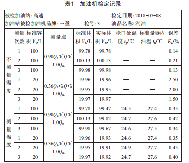1溫度對加油機(jī)計量檢定結(jié)果的影響