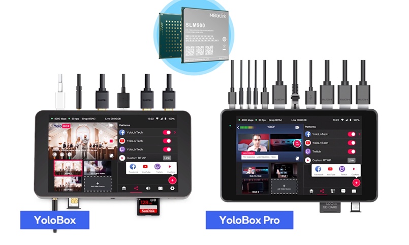 針對于此,美格智能助力杭州YoloLiv先后推出了YoloBox和YoloBox Pro兩款全新的智能直播硬件。用戶只需要用一根HDMI線連接攝像機、無人機、GoPro等拍攝設(shè)備,就能實現(xiàn)高清直播,最大限度降低了專業(yè)直播的成本。