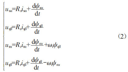 式中,ψsα、ψs8、ψrα、ψr8、isα、is8、irα、ir8分別為α-8坐標(biāo)系下的定、轉(zhuǎn)子磁鏈和電流:Ls、Lr、Lm為α-8坐標(biāo)系下的定、轉(zhuǎn)子電感和互感。