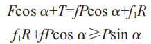??自诔惺軓较驂簯?yīng)力時也受切向摩擦力F作用,摩擦力由徑向壓力產(chǎn)生。受力分析建立平衡方程: