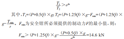 當安全鉗動作時,根據曳引條件: