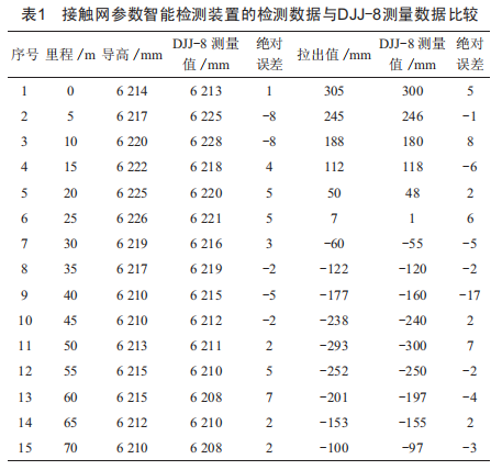 從接觸網施工同步檢測裝置與DJJ78激光測量儀的測量結果(表1)對比來看,測量誤差約為-10mm,滿足工程要求。在接下來的研發(fā)工作中,可以通過傳感器補償及濾波算法來提高測量精度。