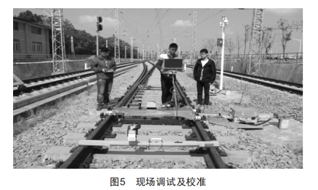 在進行現(xiàn)場調試時,采用了目前接觸網檢測最常用的設備(DJJ78激光多功能接觸線檢測儀)進行設備的精度校準測試,如圖5所示。