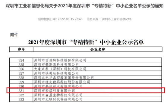 矽塔科技獲評(píng)2021年深圳市“專(zhuān)精特新”企業(yè)