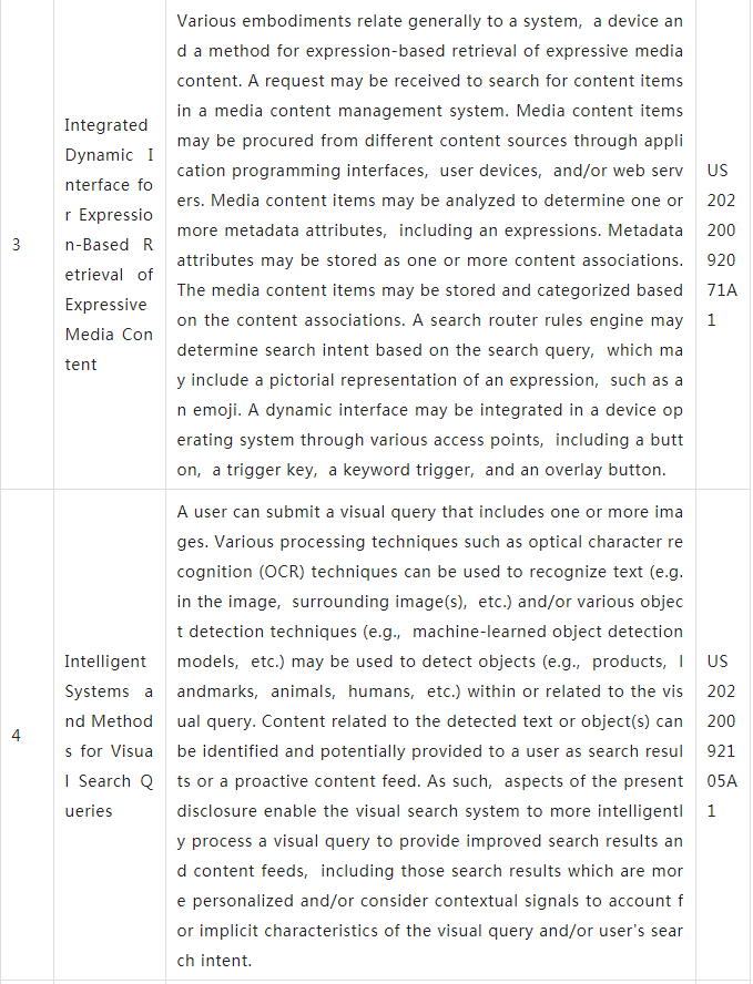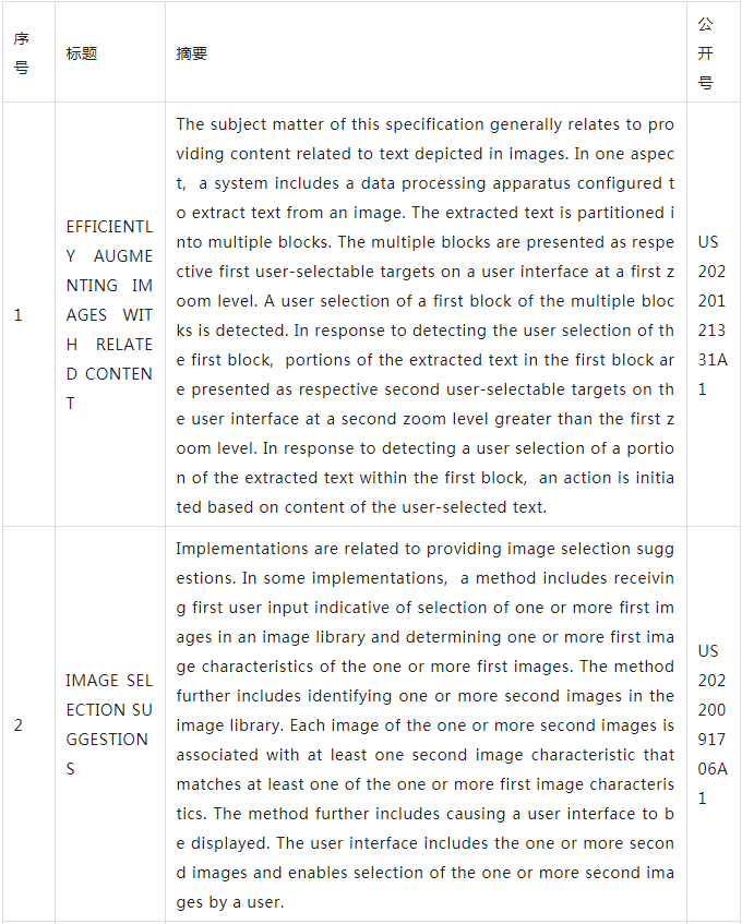 下表為9件為谷歌近期公開圖像檢索+識別領域的專利。