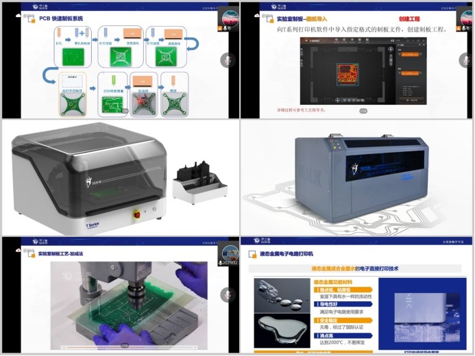 讓學(xué)生了解到,依托夢之墨快速制板系統(tǒng)和柔性電子印刷系統(tǒng),以液態(tài)金屬材料為墨水,利用增材制造技術(shù),可以快速打印PCB和制作柔性電子產(chǎn)品。這項(xiàng)技術(shù)可以在不改變?cè)性O(shè)計(jì)的情況下,實(shí)現(xiàn)快速成型和定制化的產(chǎn)品,方式新穎,迅速引起學(xué)生們的興趣。