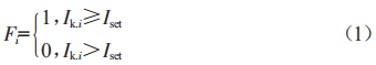 式中,Fi為節(jié)點(diǎn)i的故障狀態(tài),Fi=1,表示節(jié)點(diǎn)i有故障電流流過,Fi=0,表示節(jié)點(diǎn)i沒有故障電流流過:Iki為節(jié)點(diǎn)i故障電流有效值:Iset為故障電流閾值。