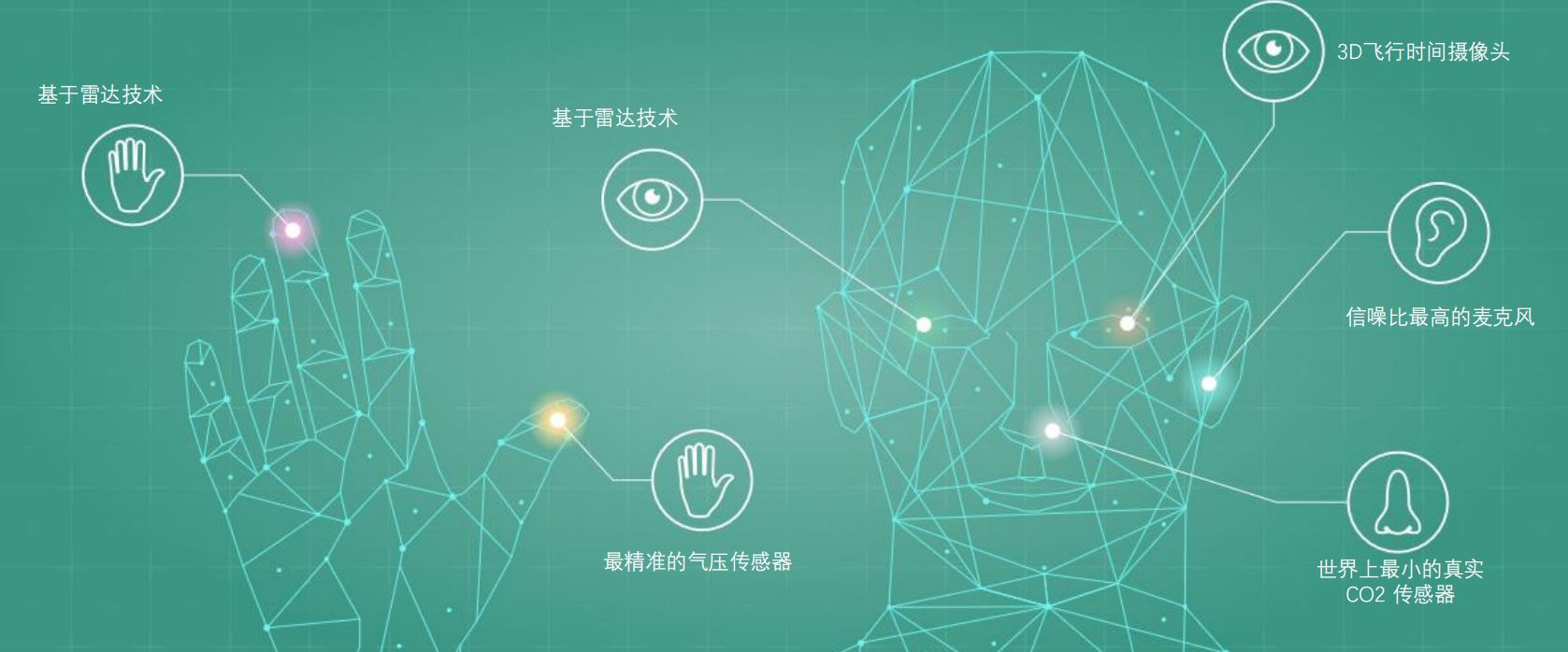 作為在傳感器產(chǎn)品研發(fā)領(lǐng)域積累了 40 年經(jīng)驗(yàn)、擁有豐富感測(cè)技術(shù)產(chǎn)品組合的英飛凌,自然早已準(zhǔn)備好各項(xiàng)舉措應(yīng)對(duì)這一快速成長(zhǎng)的市場(chǎng)。為了使傳感器的概念更加直觀且深入人心,英飛凌選擇了利用人體的五官來(lái)形象比喻其豐富的XENSIV傳感器產(chǎn)品組合。分別包括了毫米波雷達(dá)和3D ToF代表的視覺(jué)、MEMS麥克風(fēng)代表的聽(tīng)覺(jué)、二氧化碳傳感器代表的嗅覺(jué)以及壓力傳感器代表的觸覺(jué)等等。這種形象化的比喻,不光是證明英飛凌的傳感器實(shí)現(xiàn)了人體感知的全覆蓋,更是預(yù)示著英飛凌的高性能傳感器,可以真正賦予機(jī)器以人類(lèi)的能力。