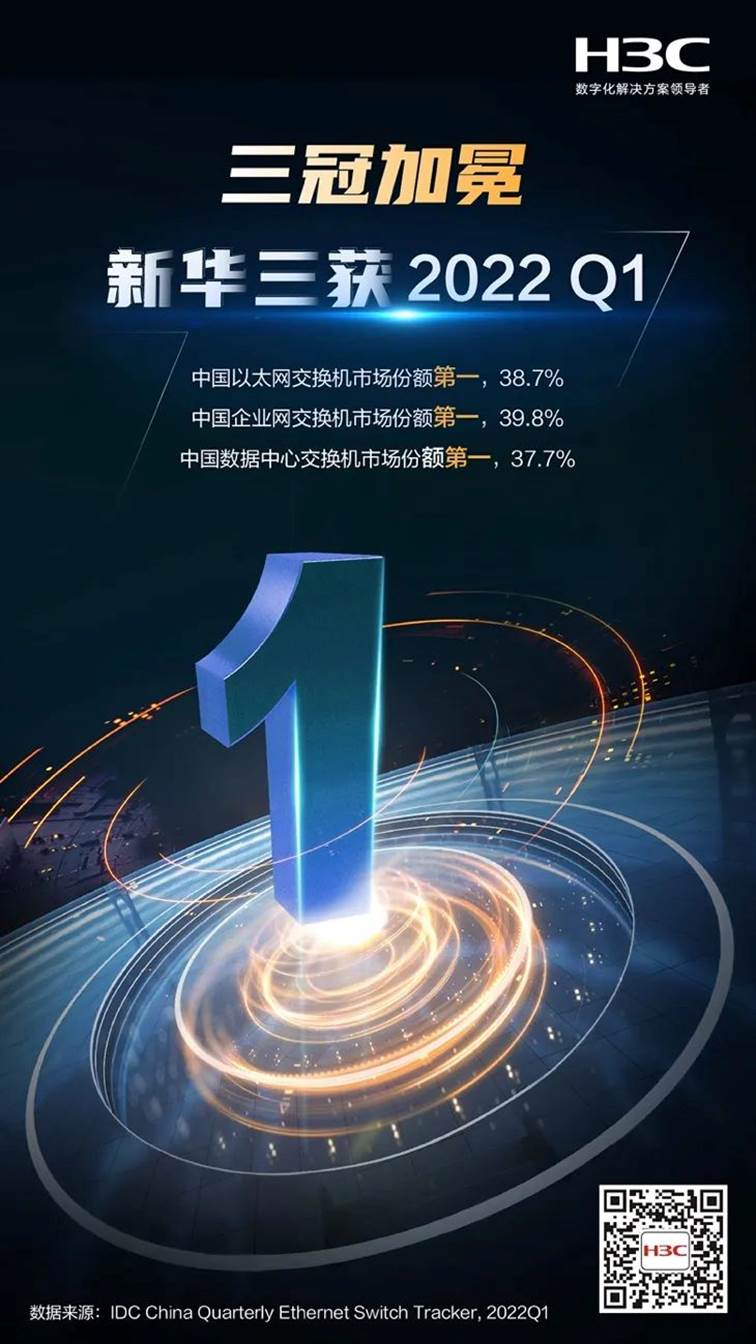 近日,國際數(shù)據公司IDC發(fā)布《中國以太網交換機市場季度跟蹤報告(2022Q1)》,報告顯示,紫光股份旗下新華三集團在中國以太網交換機、企業(yè)網交換機、數(shù)據中心交換機市場,分別以38.7%、39.8%、37.7%的市場份額獨攬三項第一,實力詮釋了中國網絡市場領導者地位。